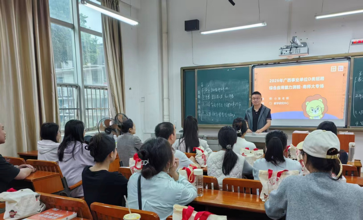 承办的2026年事业单位D类考试考前冲刺课在明秀校区文星楼109室顺利开讲。本次培训特邀张旭年、李伟军两位资深讲师,吸引众多已报考及有意向报考的学子到场学习。