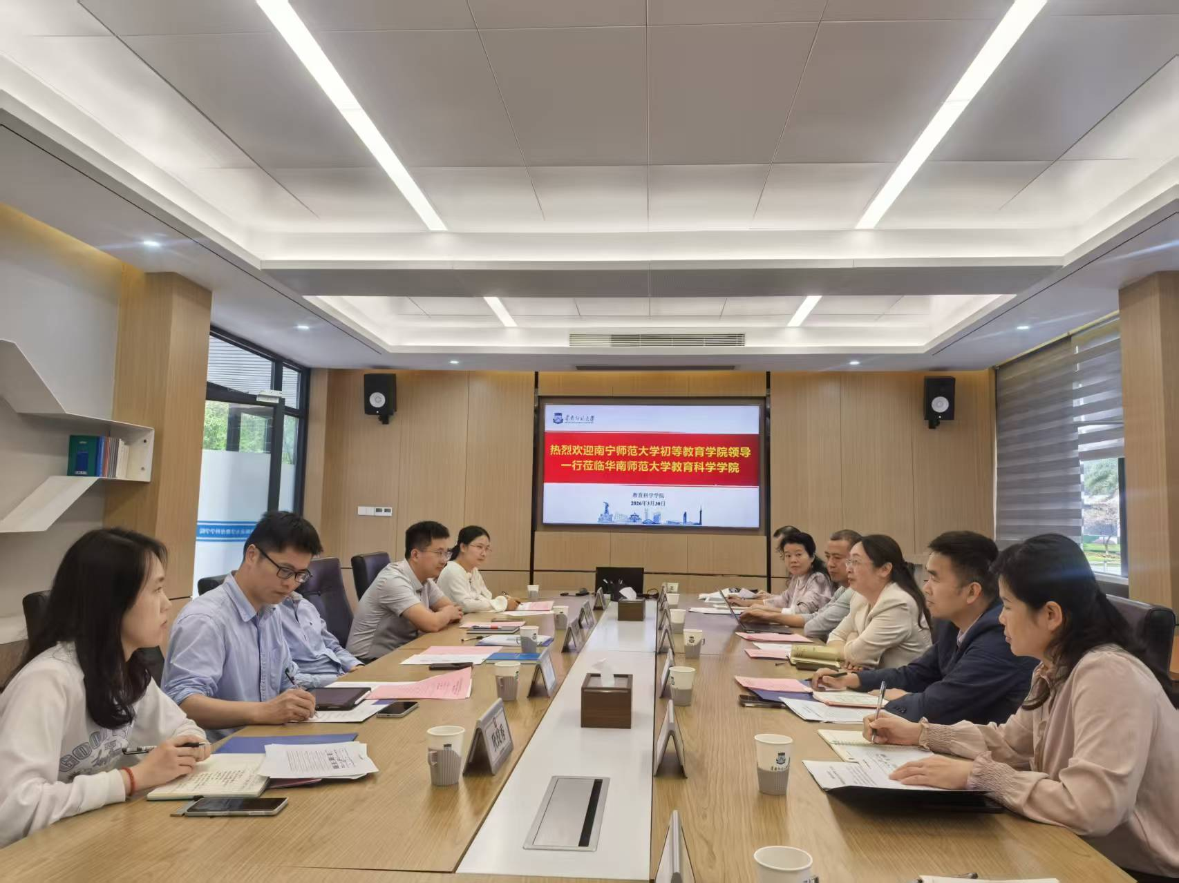 。华南师范大学教科院院长、副院长、本科教学办公室负责人及相关的专任教师与调研组进行了座谈,分享了他们在小学教育专业发展建设中的相关情况及经验,并对小学教育专业发展的困境及前景进行了深入的探讨交流。
