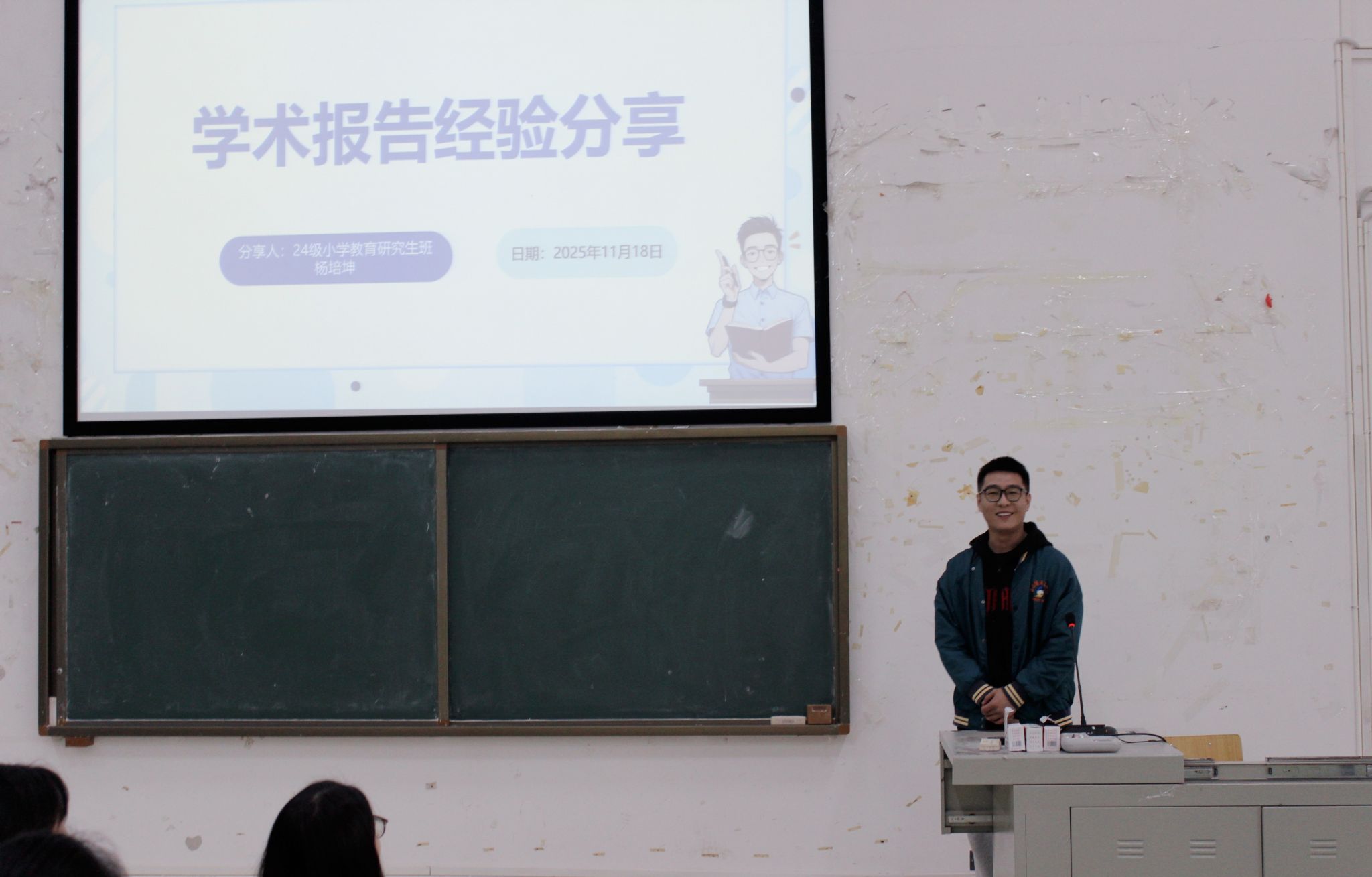 活动伊始,主持人就本次活动进行简要介绍并组织观看警示教育视频,强化研究生们对学术诚信、成果原创性的认知。随后,三位研究生代表结合自身经历,传授宝贵的实践经验。其中,梁倩同学结合全国“田家炳杯”师范生教学技能大赛经历,梳理备赛方法与实战技巧;杨培坤同学聚焦学术成果产出,分享论文投稿与学术报告参赛心得;李红梅同学则详解论文写作技巧与投稿策略。最后,在交流互动环节,同学们积极提问,研究生代表们耐心解答,现场氛围热烈而融洽。活动尾声,王艳芳老师进行总结。她勉励同学们在教学技能竞赛、学术会议交流及论文发表等领域,开辟自己的赛道,提升专业素养。