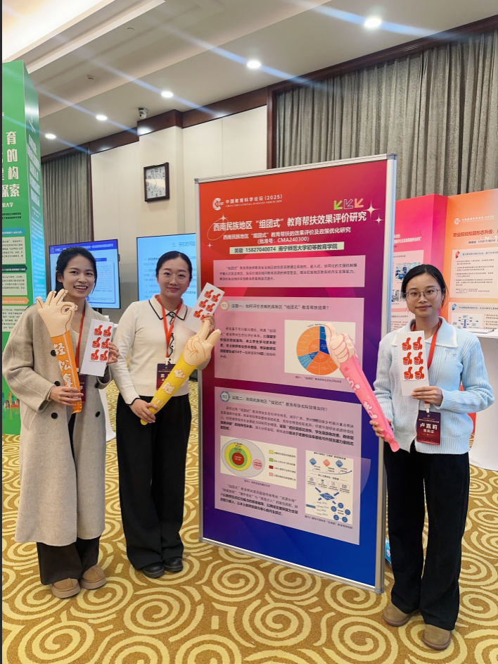 “西南民族地区‘组团式’教育帮扶的效果评价及政策优化研究”课题组应邀出席“教育公平圆桌对话”平行模块,并参与学术海报专场。学术海报专场活动紧扣“智能时代中国教育学知识重建”核心主题,通过海报展示、学者演讲、互动交流与专家评选等多元形式,引发了与会学者的积极对话。课题组在学术海报活动现场展示了《西南民族地区“组团式”教育帮扶效果调查》的阶段性研究成果。