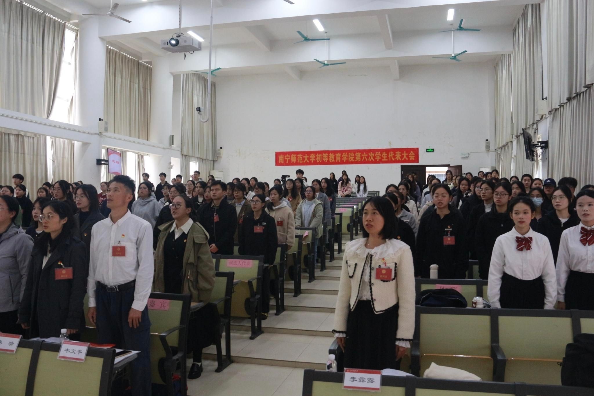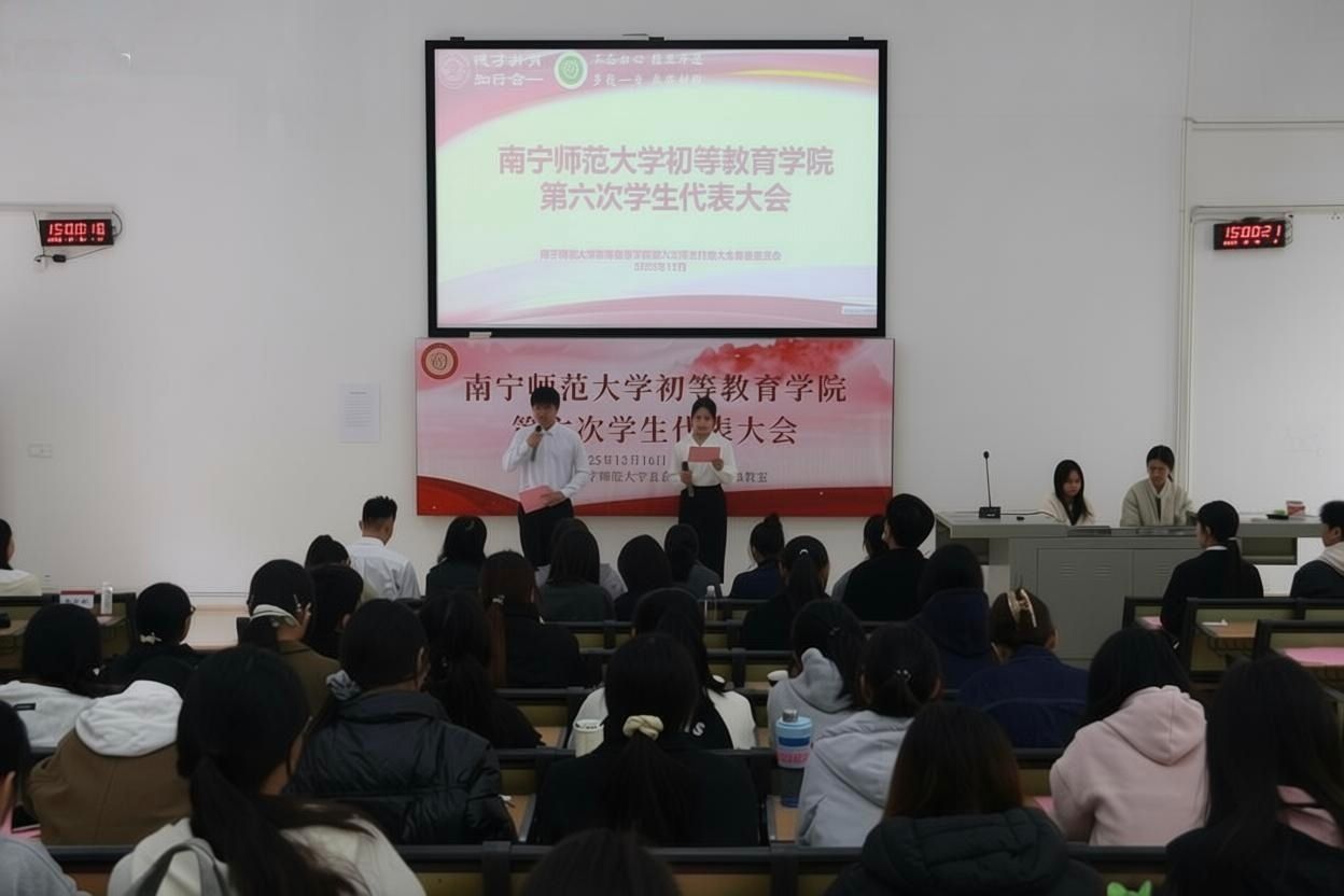 第六届学生委员会主席团成员。随后,新当选主席团成员陆韵怡宣读倡议书,从五个维度向全院同学发出行动号召,凝聚青春共识。辅导员李露露在闭幕词中肯定第五届学生会工作实绩并对新一届学生会主席团提出履职期望,勉励代表们锤炼师范品格,为未来发展奠定基础。大会在奏唱校歌中顺利闭幕。