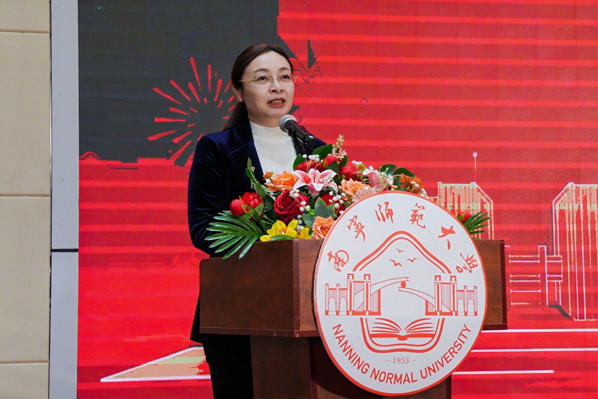上午10时,大会在雄壮的国歌声中拉开帷幕。全体与会人员共同观看了办学120周年专题宣传片《百廿薪火耀南疆》,影片以珍贵的历史影像和鲜活的人物故事,串联起学校自1905年创办以来,从清末民初的兴学育才到新时代的提质增效,在不同历史时期坚守师范初心、培育教育人才的辉煌历程。